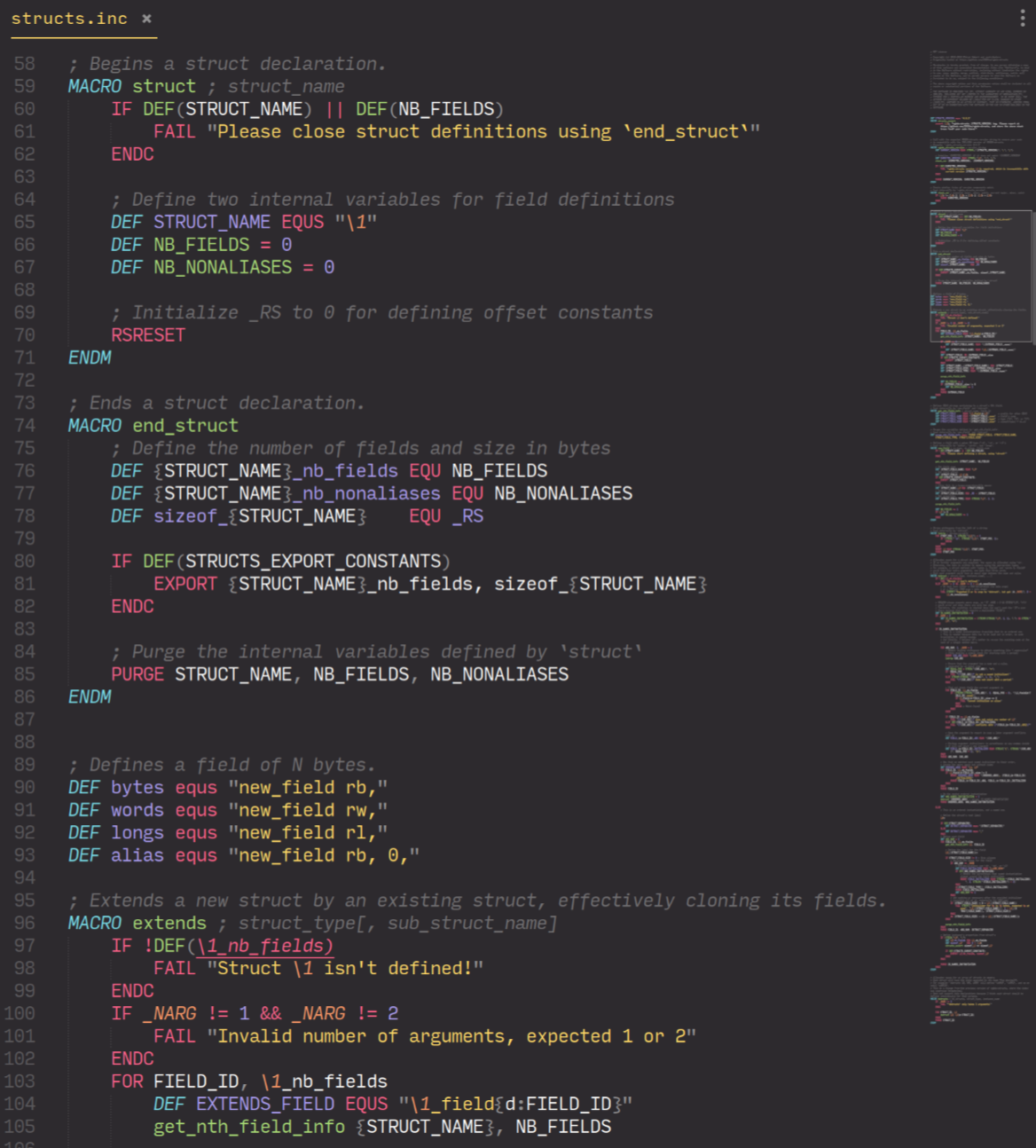 RGBASM doesn't support structs